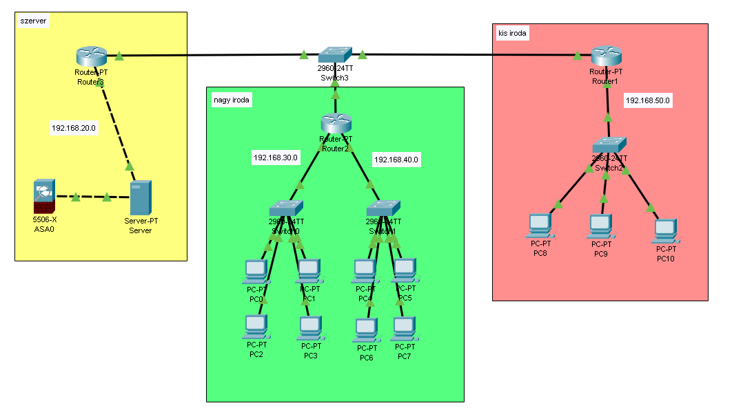 Megterveztünk egy vállalati hálózatot és csináltunk egy kéttáblás adatbázist a gépek kezelésére.